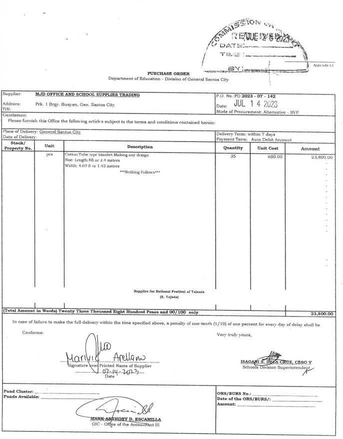 Notice of Award: P.O 2023-07-142 Medicines and Supplies for National Festival of Talents